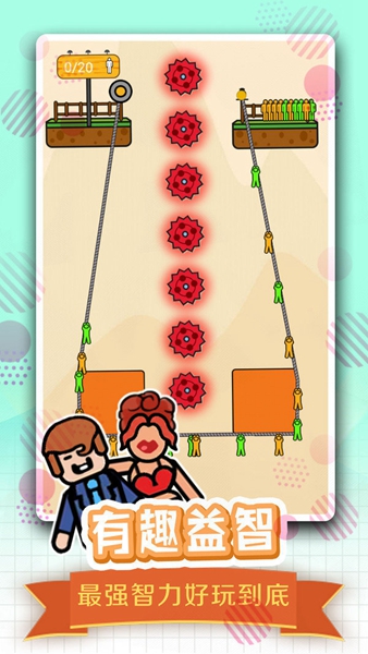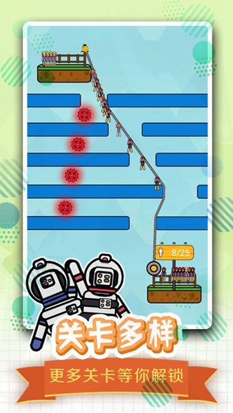 1、新鲜的情景让人感觉轻松,有趣的关卡在指尖,随时随地都能挑战。