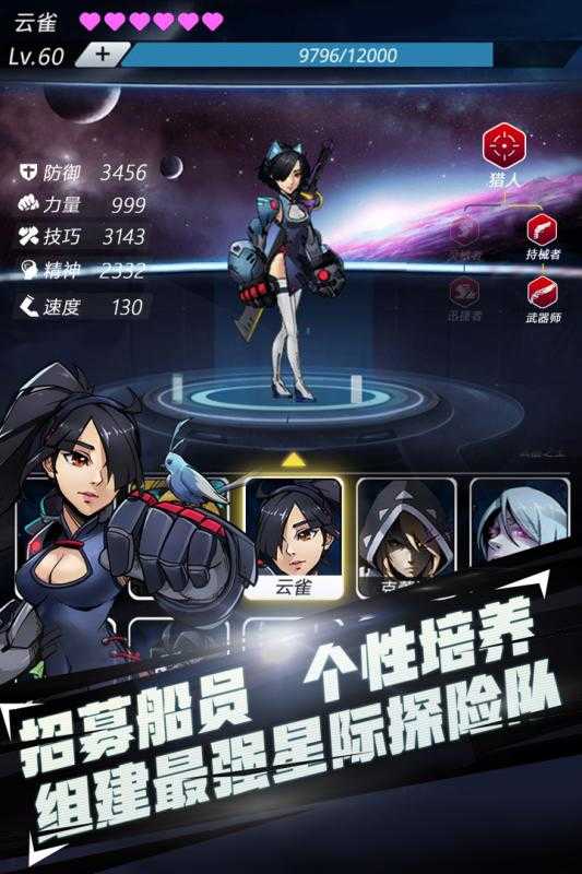 迅捷致命的猎人、坚不可摧的先锋、擅长制造机枪哨塔的工程师、使用药剂支援战场的生物学家、运用超能力摧毁对方阵线的异能者,特色鲜明的职业体系。丰富的武器和装备,使用狙击枪在后排一击致命、亦或握着武士刀冲锋陷阵,战斗风格由您决定。精细到性别、发型、脸部、服装的外观自定义,打造个性化的星际游侠。与船员们保持沟通,协助他们处理个人事务,建立更深的羁绊。