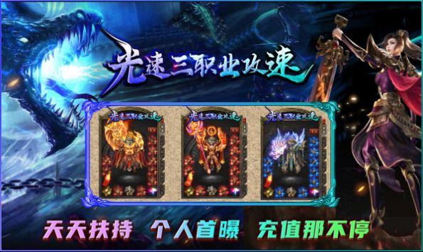 光速三职业攻速传奇是一款多职业的攻速传奇游戏,玩家可以根据自己的喜好和游戏风格选择一个职业,并通过升级和装备来提升角色的能力。通过不断的冒险和成长,同探索游戏世界和战胜强大的敌人。游戏中有丰富的任务和副本可供玩家挑战,完成任务将获得经验值、金币和稀有装备。