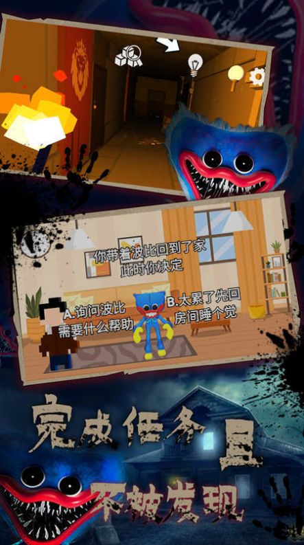 流浪猫咪模拟器中文版2023是一款恐怖大蓝猫主题的剧情模拟逃生游戏,玩家将在一个开放的城市环境中自由探索。游戏还提供了多种任务和挑战,玩家可以完成这些任务来获取奖励和解锁新的内容。任务可能包括寻找特定物品、帮助人类解决问题等。你需要通过简单的剧情模拟,完成不同结局的玩法挑战。