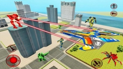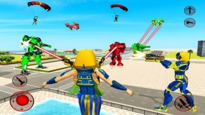 2、游戏操作江南,触屏控制机器人在地上跑,天上飞,海里游,战斗方式灵活。