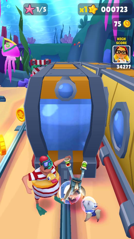 地铁跑酷(国际服)海底世界版这款游戏,会以最新的海底世界赛道地图,让玩家在其中完成更为惊奇的跑酷挑战哦。