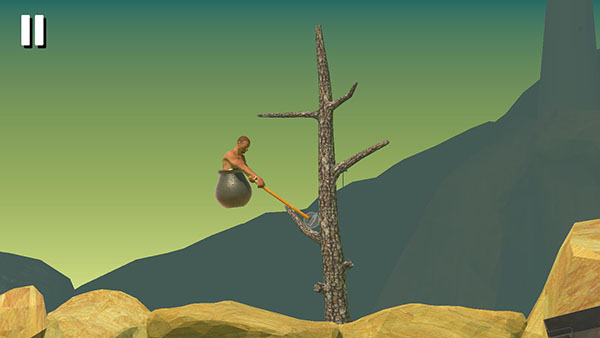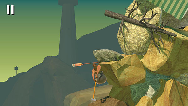 然后就是初期的移动,最初的障碍是一棵树,你需要调整一下锤子的角度,把锤子的角度控制一下,锤柄处要斜向右上,然后发力,注意在空中转动这个锤柄,然后用锤子顶部可以勾住树枝或者树杈之类的,然后以这个树枝树杈为基点,再次进行跳跃,跳过树就过了第一个小障碍了。