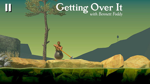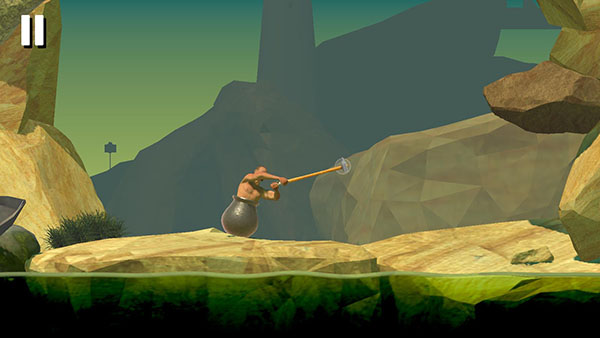 首先呢,就是起始点,一个裸着上身的大汉会从罐子里面钻出来,拿上锤子准备靠着锤子进行移动。首先熟悉一下基本的控制键移动和物理模拟引擎的效果,熟悉这个效果,对你后期的寸度的把握很有帮助。另外,当你在起点处多次掉入水中的话,你会发现你的大汉变形了,很有喜感。