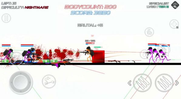 【触摸屏幕】只需通过画面中的虚拟摇杆来控制角色的移动,通过触摸屏幕进行射击等操作。