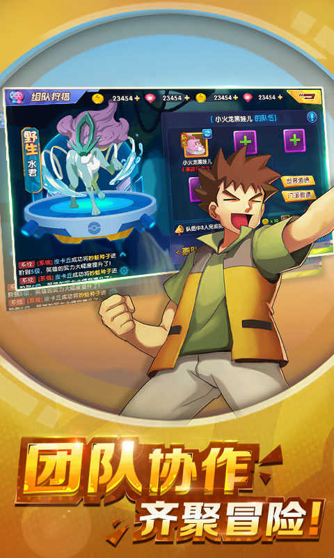 1、团队协作一同冒险,与其他的训练家组成队伍,一起挑战更加神秘危险的领域;
