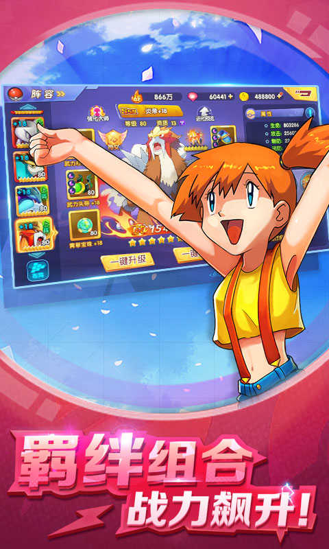 2、个性化神奇宝贝,甚至可以自由进行变换和穿戴时装,走上最强的口袋妖怪训练大师之路。