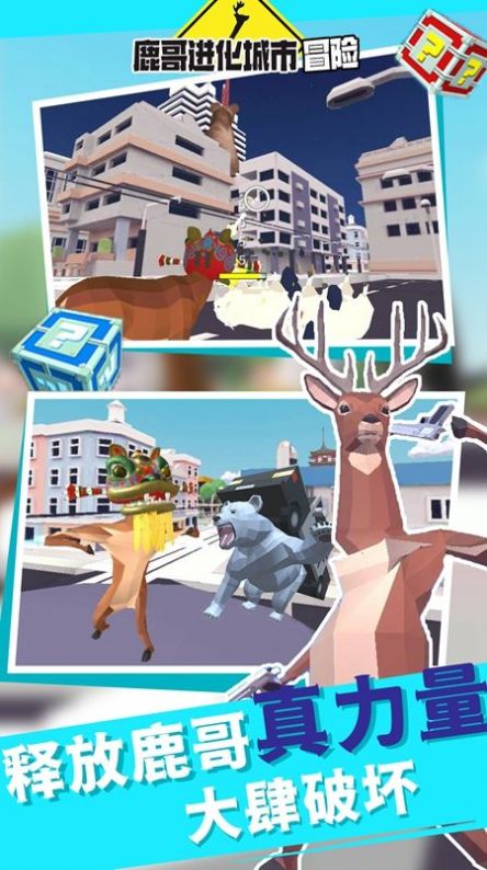 鹿哥进化城市冒险是一个全新的沙雕鹿城市冒险的游戏,面对着其中紧张刺激的冒险挑战,能够让玩家的游戏过程感受到更多精彩的挑战,游戏玩法也都会是十分刺激的。整个游戏过程都会以极高的自由度为主,玩家能够跟随并操控着沙雕鹿,完成更多超级解压的冒险挑战。你可以随意组合不同的动物,也能任意选择不同的城市进行破坏。