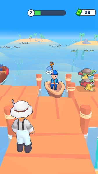 2、在岛上捕鱼,捕捞了多达80种鱼,并填满了地图,收集独特的渔具,让你的钓鱼生活更轻松