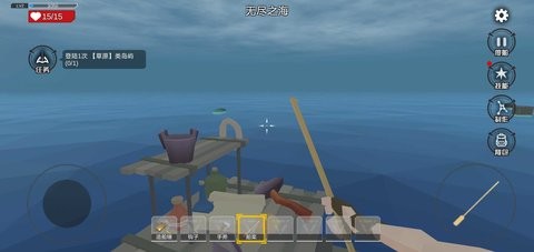 控制木筏:玩家需要控制木筏在海上航行,使用船桨进行移动,遇到岛屿时可以登上岛屿。