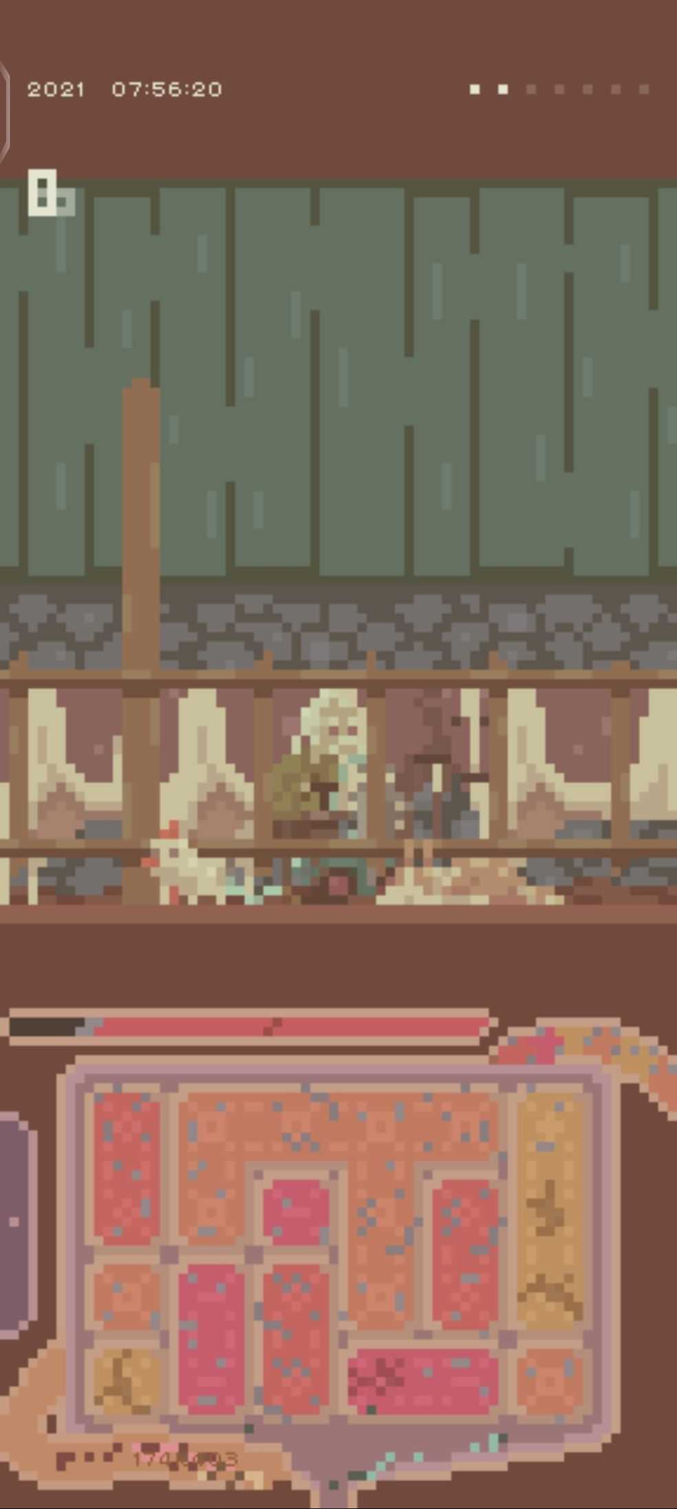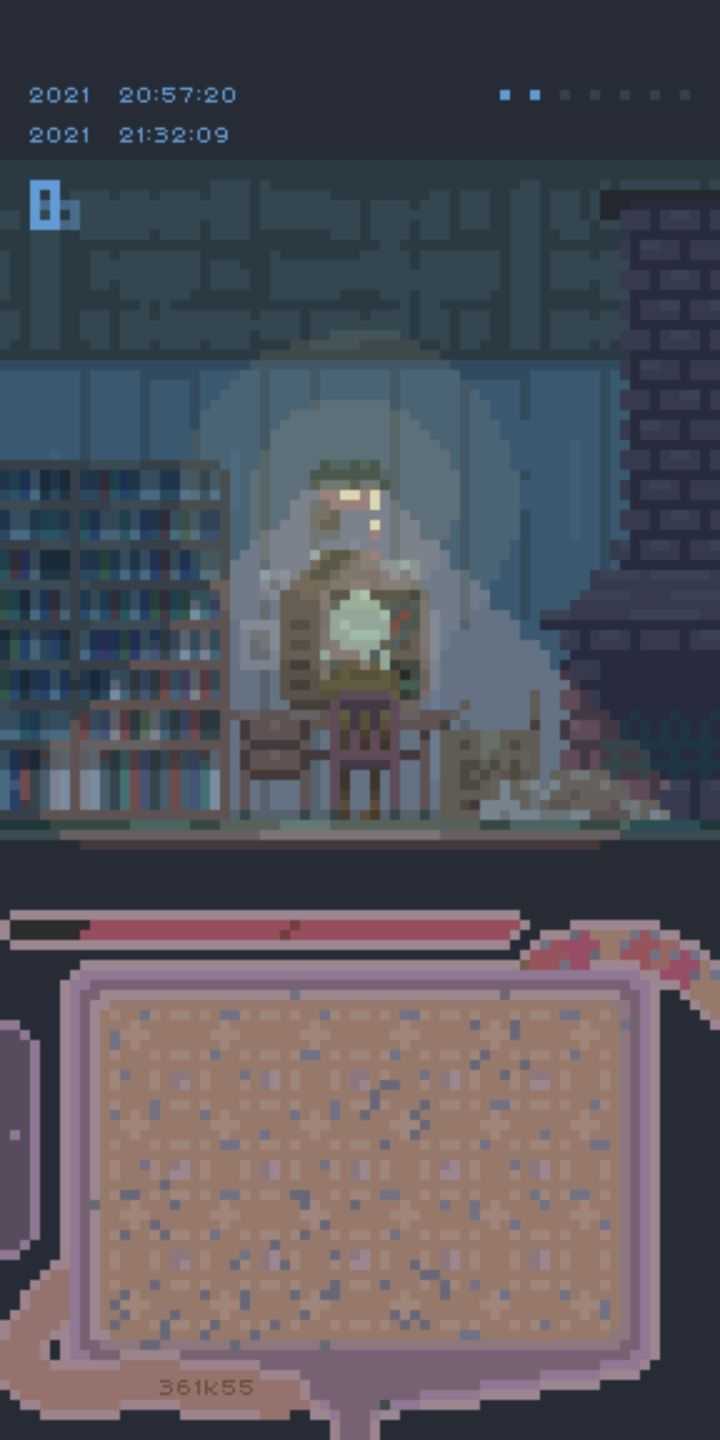 让我很有好感的是横屏与竖屏画面不同的设计,当我消除到上限,就可以静静观察老爷子和狗狗的生活。早上5点老爷子就会掀开被子坐起来,但他不是去吃早餐,而是搬草。忙完农场里的活,老爷子才开始吃早餐,给狗子加狗粮。狗子总是跟着老人。在狗子的梦里,它在外面来回奔跑,只有那里没有老人。老人有很多事要忙。他要挤牛奶、除草、耕地等等。