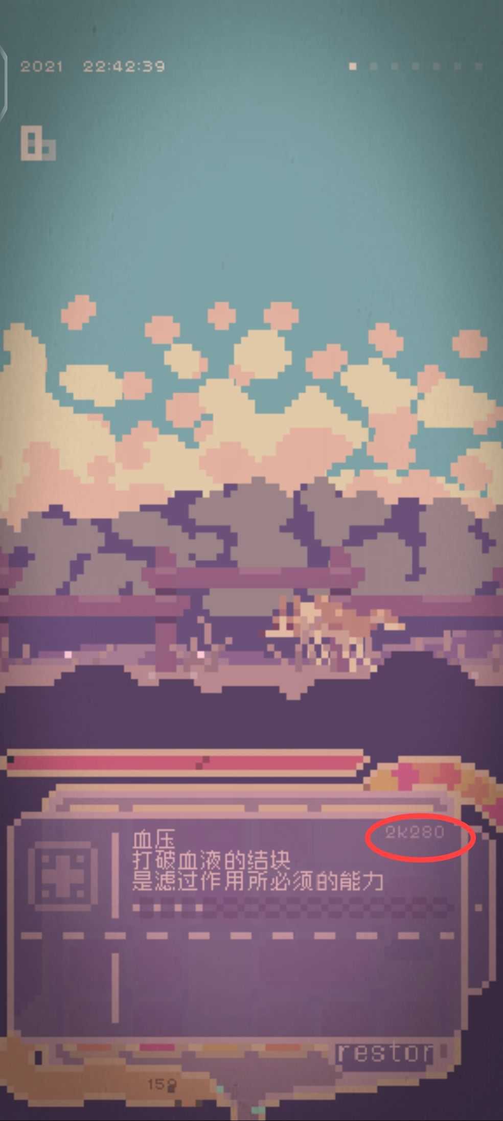 这是一款像素游戏显而易见。游戏里这只狗狗得了肾病,它和一个老人一起生活,而你就是它的肾脏,负责点击结块,增加它的生命。