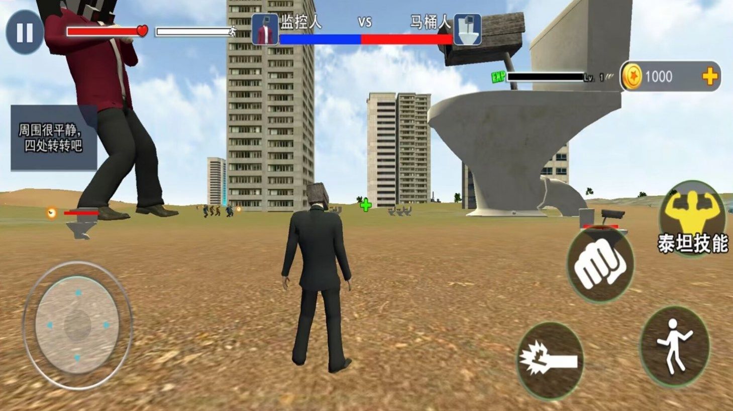 模拟巨人是马桶人主题的全新城市冒险类游戏,玩家可以通过自由视角操控马桶巨人,这个游戏拥有非常直观的格斗竞技对战玩法,需要玩家灵活操控自己的角色击败对手,魔性的内容设定,自然也会让广大玩家非常喜欢的,其中的庞大城市背景,也会以3D立体的画面,带给玩家多变的作战环境。