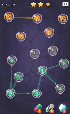 遇到迎面来的敌人可以一只分出去抵挡住 然后用旁边的细胞趁虚而入 还有个有趣的操作 可以切断连接 加快同化速度 从最贴近本体的哪里切 增加的数量就多 这个操作可以快速通关 也可以用这个给同伴增加细胞数量 能用到很远的细胞上 关卡非常多 我个人是能玩挺久的