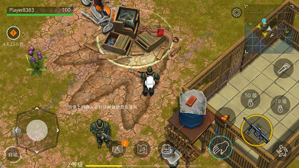 3、游戏中充满了危机,但是抢夺物资和武器是必须的,维持自身的健康状态。