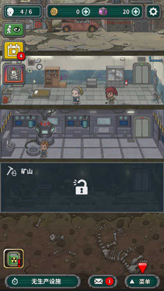 地下世界避难所是一款精心制作的生存冒险类游戏,游戏背景设定在核战争后的世界,主角和其他幸存者们在地下建设起一座避难所,自给自足,在险恶的环境中生存下来。