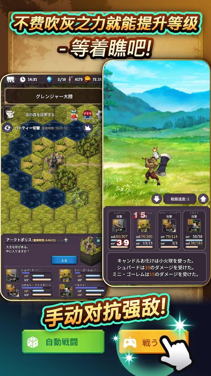 1、用自动探索提升等级!而且你可以享受轻松的、离开就忘的游戏方式!
