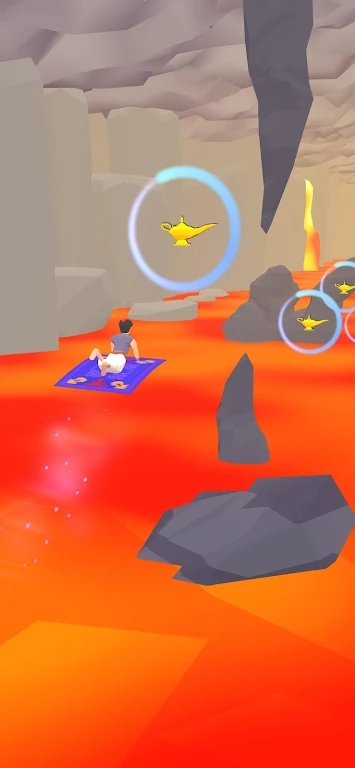 2、玩家必须骑着魔毯在建筑物之间跳跃,突破障碍,体验刺激的跑酷操作。