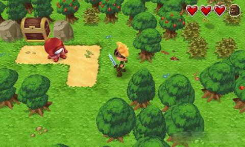 过桥之前的宝箱会给予玩家【画面卷轴】效果,不会再出现整个屏幕整个屏幕切换给人的生硬感觉,画面开始以主角为中心。然后取得【Sword】后,回到最开始开始游戏的地方,用剑将杂草全部斩掉!路上可以取得星星和卡片~