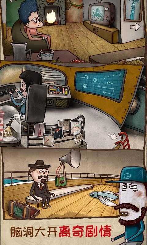 研究员拿起一段飞鱼仔细端详。这也没什么不同啊,奇怪,他嘴里还嘟囔着,不过,比起飞鱼,也许船舱里那巨大的尸骸。欲言又止的他却不明白,这短短几句话给了你无限的启发,你决定拿起他的刀,会船舱看看(点击桌面的刀,带走)。不过在这之前,你并没有忘记,拿出之前得到的胶带,把左下方那因为线路破损而坏掉的机器修好(点击胶带,点击破损的电线使用)