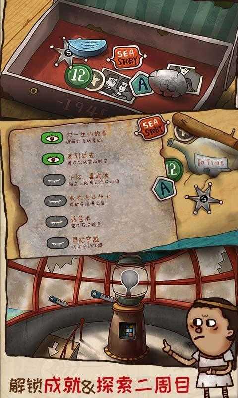 我是谁?为什么会在这个神秘的小岛上?带着这些疑惑,我将探索这个小岛的每一片地方,工厂工厂、轮船、小屋、火箭、灯塔...和每一个岛上的居民对话,有灯塔看守人、船票检查员、老奶奶、工厂研究员...发现一个又一个秘密,当我获得开启时间机器的密码,我将了解这个小岛的前世今生,了解一段不为人知的往事...