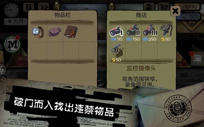 国家指派你监视房客们的一举一动。你的首要任务就是暗中监视房客,窃听他们的对话内容。趁他们外出时,破门而入,寻找一切可能威胁组织势力的蛛丝马迹,并向你的上级汇报。如若有犯法或是密谋破坏国家安稳的危险分子,你也需要向上检举。