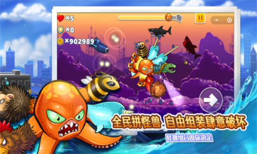 独特的玩法:游戏中,玩家需要操作八爪鱼抓住不同种类的海洋生物,同时躲避障碍物,玩法新颖有趣。