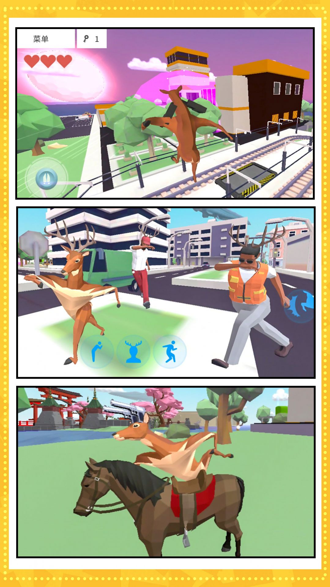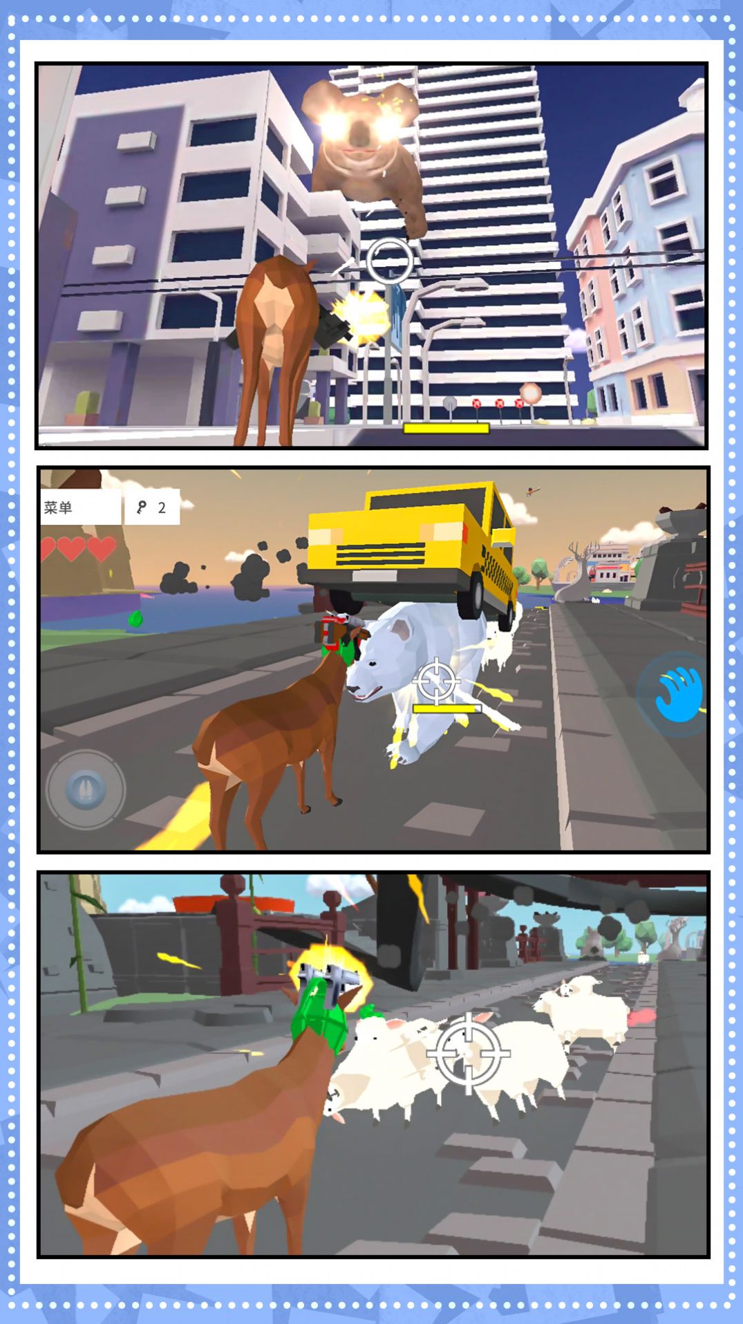 破坏神暴走是一个超级魔性解压的沙雕鹿城市冒险游戏,玩法十分刺激并且具有强烈代入感,玩家可以让沙雕鹿展现出超绝的战斗力,以此来击败所有的敌人。庞大的3D游戏世界,以极强的立体效果,塑造出完善的城市背景,让玩家感受更多其中的精彩对决,不论是玩法还是其中的刺激性乐趣也都是会非常解压的。