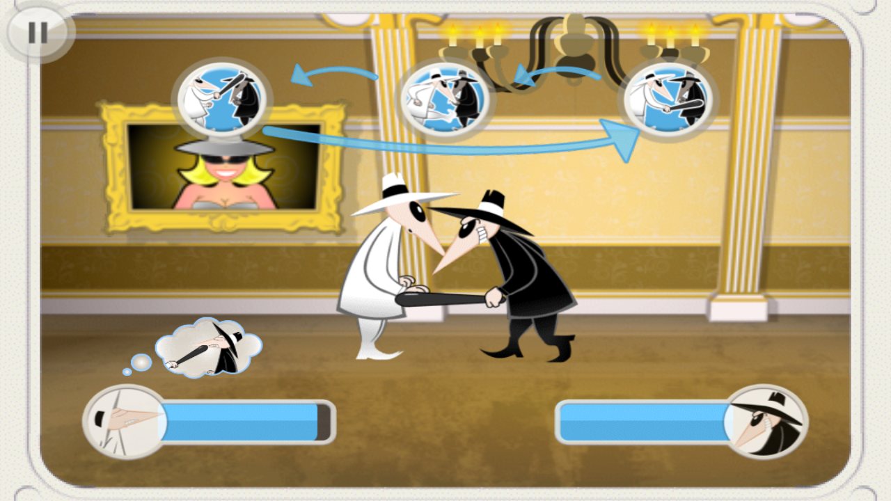 间谍对间谍是一款根据漫画py vs spy改编而成的冒险解谜类手游,在间谍对间谍这款游戏中玩家将扮演一个间谍的角色,目标是盗取对方间谍的手里的东西,并逃离大使馆,同时过程中需要不断躲避各种机关陷阱。对这款游戏感兴趣的小伙伴欢迎前来下载哦!