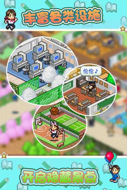 口袋学院物语1是一款非常好玩的开罗游戏,玩家需要经营一个学院,你可以自由搭配你的教室和走廊,举办各种校园活动,让学校建设的更美好,培养一批有学识的学生。