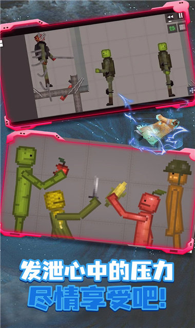 像素盒子模拟器是一个趣味的像素射击冒险手游,游戏中玩家们可以使用各种各样的道具来攻击小人,撕裂,刺伤,射击,燃烧,中毒等,提供了丰富的交互性,玩家可以与NPC进行对话、完成任务、探索隐藏的地点和秘密,并发展自己的角色!