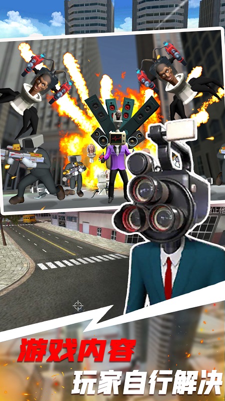 新马桶人大战监控人是一款全新的马桶人主题城市大乱斗冒险游戏,马桶人的阵营会与监控人的阵营展开激烈对抗,复杂的城市地形之中,需要玩家快速适应多变的作战环境,魔改的内容呈现十分鲜明。游戏提供了丰富的关卡和更多刺激的挑战,多种技能和装本都能激情使用,快速参与双方阵营,展开激情对决吧。