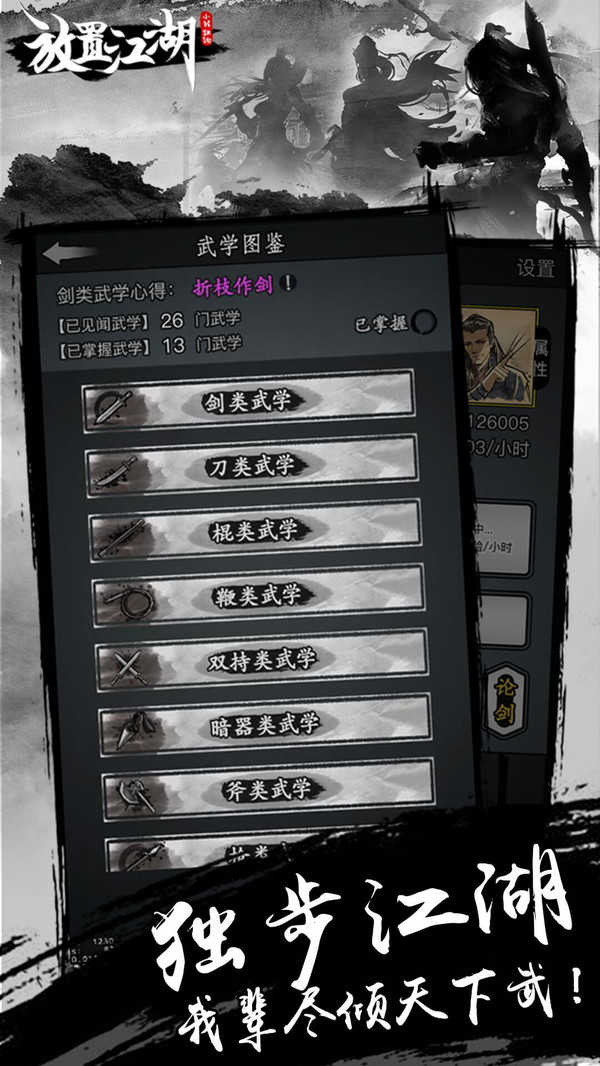 放置江湖离线版是一款高度自由的冒险类手游,玩家在这里可以尽情的体验各种行走江湖的乐趣,海量地图,多个门派任玩家选择,玩家在游戏中还可以打造属于自己的专属兵器,勇闯江湖。丰富的任务关卡,特色的系统,都会让玩家欲罢不能,玩了还想玩,快来下载试试吧!