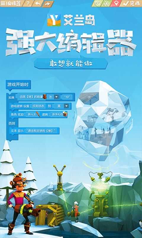 1.通过游戏内置的编辑器,你可以对现有游戏进行修改,也可以从零开始创造自己的游戏并且分享给他人。如果这还不够,艾兰岛的创意工坊里还有无数的游戏和内容等你去发现和探索!