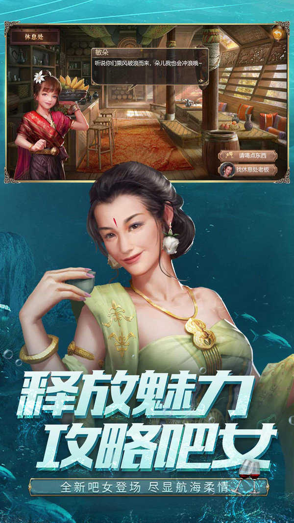 4、除了经典的三系玩法之外,更有国家、酒吧招待、投资、商会等经典的系统,航海家们更可以在无垠的广阔海洋中组队、互助、挑战、私掠。