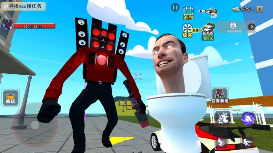 巨型音响人是一款音响人怪兽的城市冒险类游戏,玩法十分刺激,玩家可以操控怪兽完成更刺激的战斗,尽情的毁灭城市,并解锁强大的武器与敌人展开激烈的对抗,整体的游戏玩法异常带感,庞大的开放性3D城市背景,都是可以让玩家解锁的,更多魔性的音响人怪兽,即将在城市之中肆无忌惮的展开破坏。
