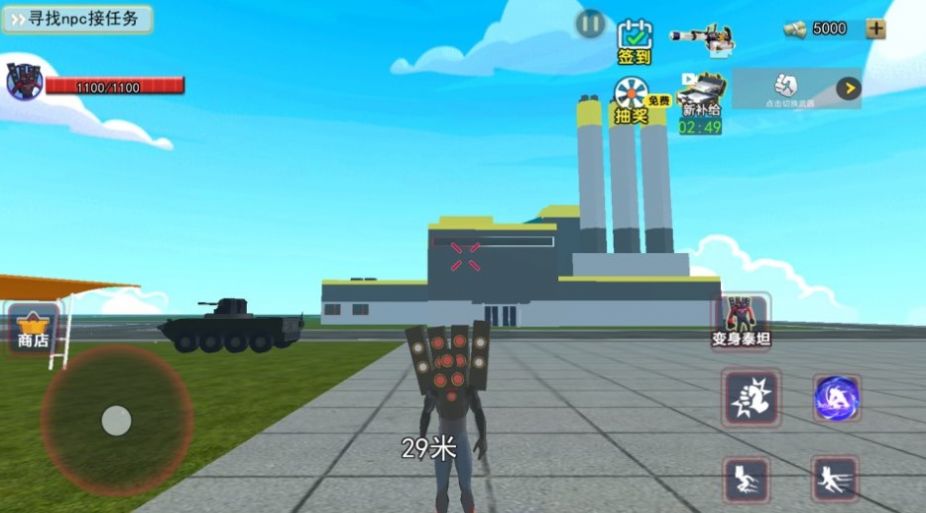 2、操控巨型音响人,使用他的强大力量来击败敌人,还可以调节音响人的装备;