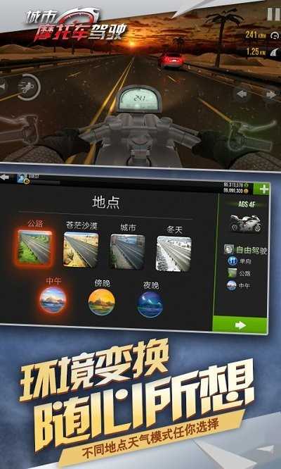 提供各种不同类型的摩托车供玩家选择。