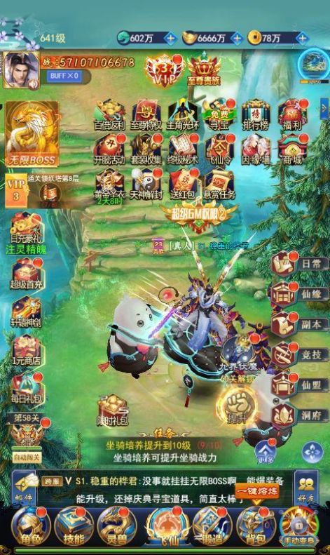 无敌剑域3是一款放置挂机的古风玄幻仙侠冒险修仙的游戏,玩法十分轻松,可以直接开启自动战斗的模式,让玩家直接解放自己的双手,经典角色养成模式开启,需要通过剧情故事的探索,深入游戏世界之中,沉浸在充满新颖内容的游戏世界之中,开局就有超多免费福利,玩家也能获得Q萌宠物和帅气坐骑,一起称霸仙侠世界。