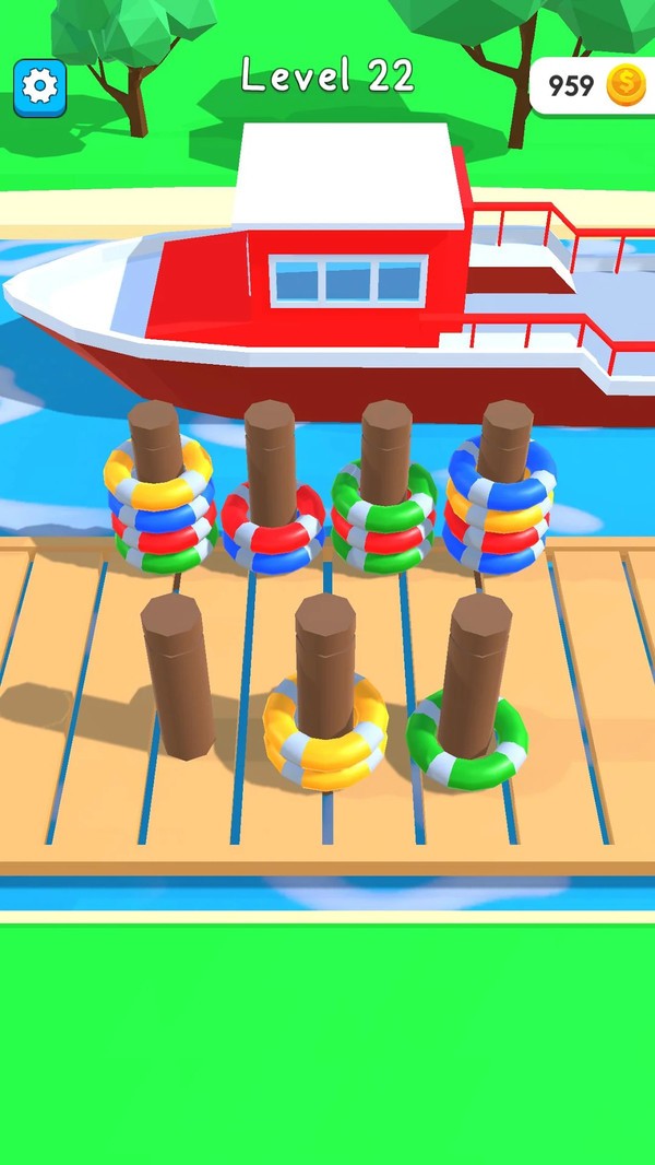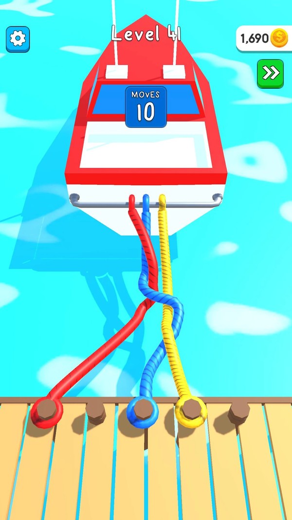 每一次在开船之前你都需要去解开一个个缠绕在木桩上的绳索,这样才可以让自己的快艇出发,