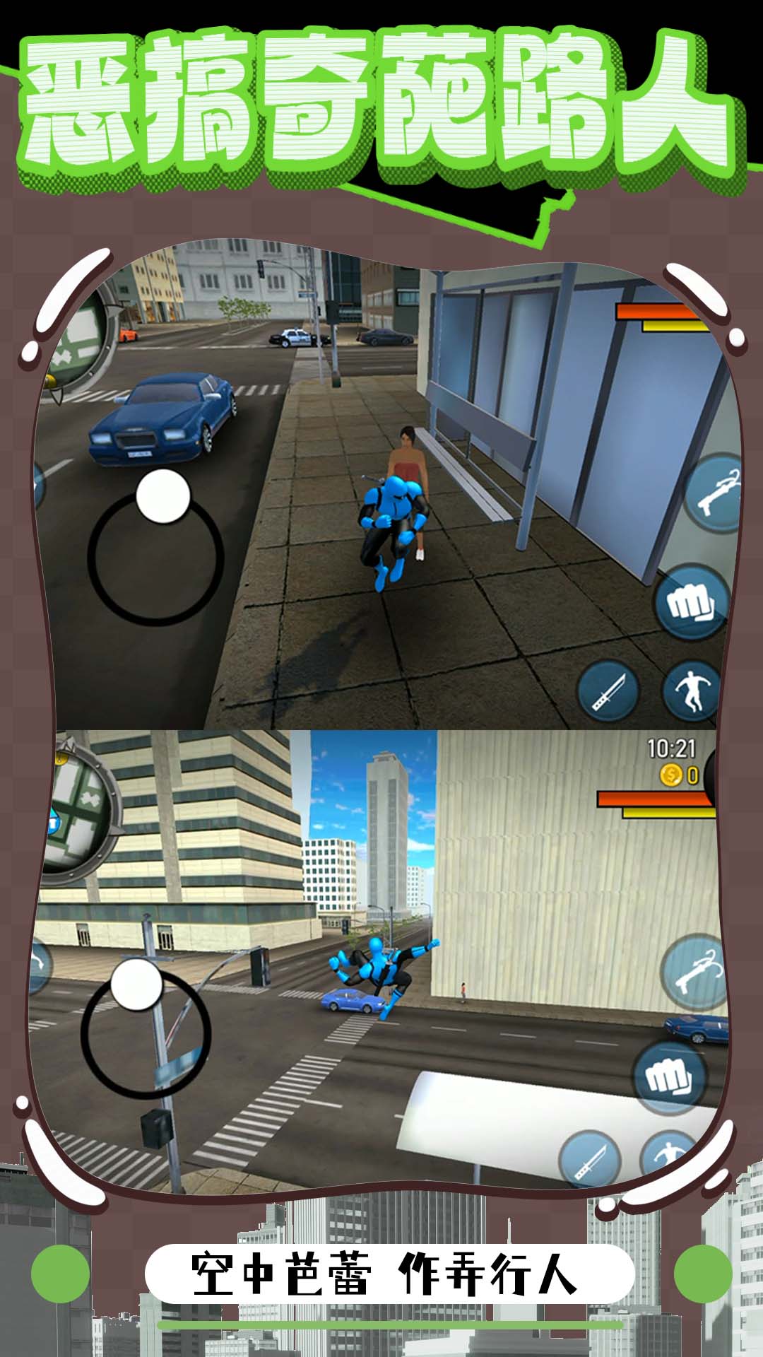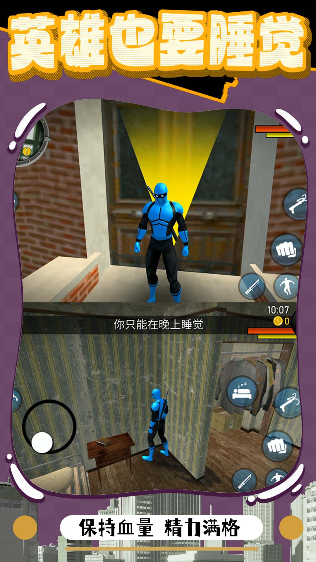 1、操控英雄自由的冒险,在城市当中四处游荡,进行各种正义行动;