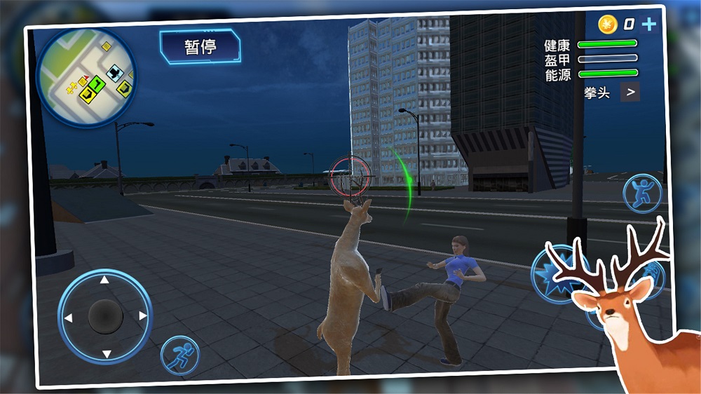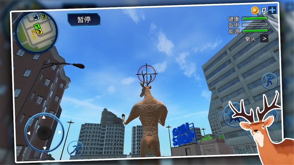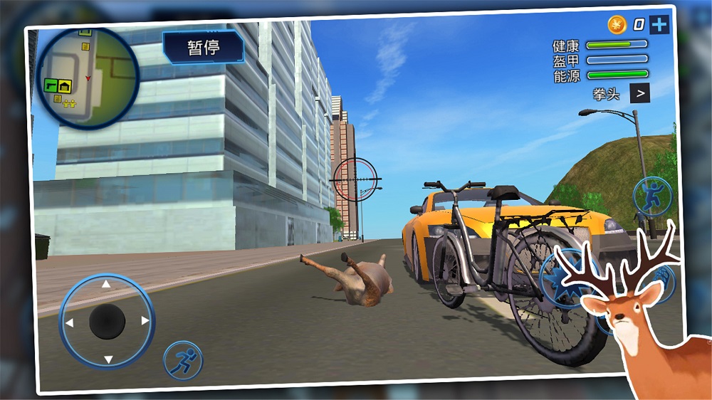 1、轻松的控制自己小鹿在城市中随意冲撞,完成各种不同的有趣冒险设计任务;