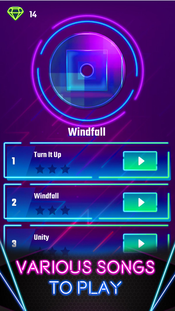 可以自由选择自己喜欢的音乐来玩游戏,也可以跟着游戏选择的音乐来挑战。