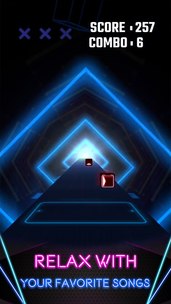 玩家需要在动态音乐中反应迅速,做出准确的操作。游戏中有很多种不同节奏和旋律的音乐。