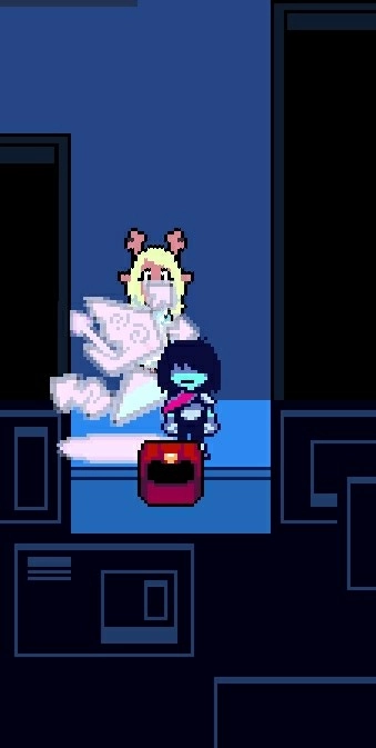 5、剧情推进,玩家操控角色向前探索,解开几个谜题后,Kris与苏西碰面,至此苏西加入了队伍。