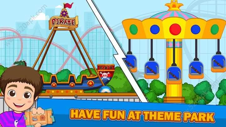 2、开放场景探索:从游乐设施到休闲区域,丰富场景等待解锁,玩家可自由探索不同区域,发现隐藏任务与趣味彩蛋。