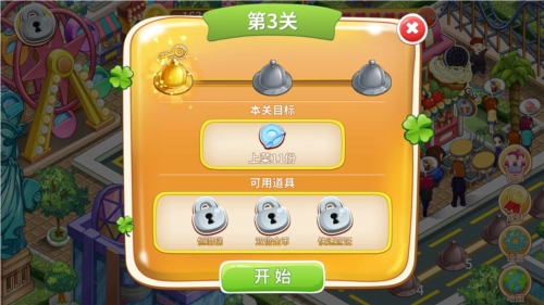 3、通关不同难度的三级关卡,获取更多汤匙与金币。