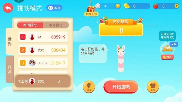 在挑战模式下,玩家在游戏过程中获取的金豆会被用来强化道具,并且得分越高,最终结算时得到的金豆数量就越多。