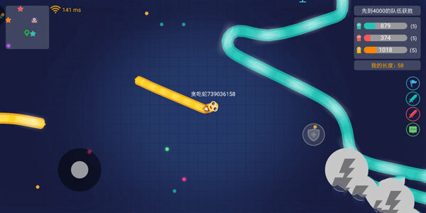 在掌握了基础玩法后,就能够开启团战模式的体验了。在团战模式里,小蛇的头部碰到同队(同色)的队友不会导致死亡。