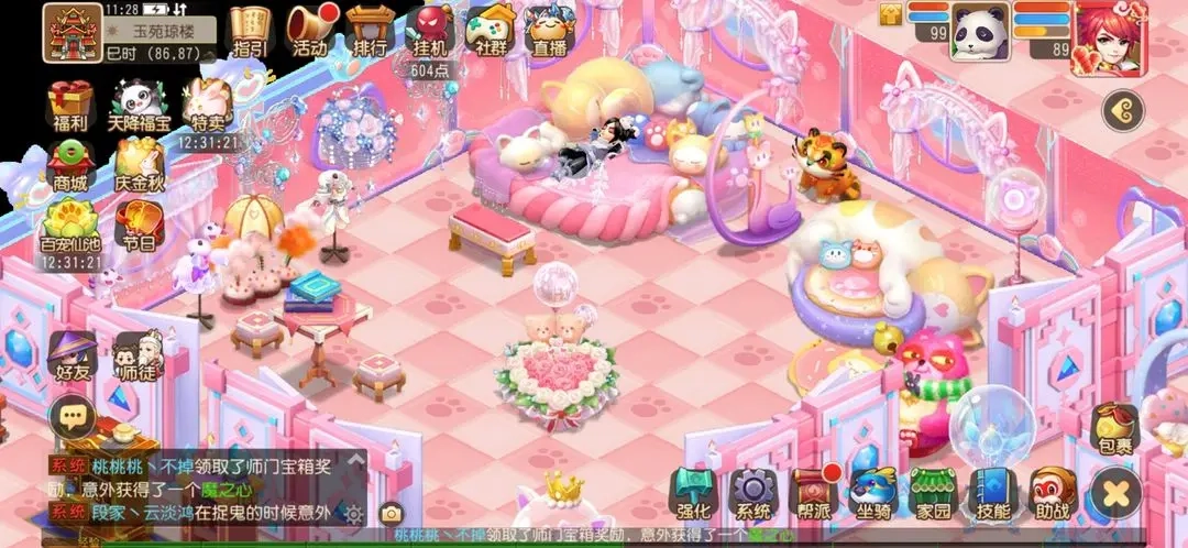 佛系养宠玩法:设有家园系统,能养猫咪、狗狗、兔子等宠物,还能种植花草树木、养育孩子,家园支持自由装扮,可自定义家装风格,闲暇时可以钓鱼、打牌,主打一个佛系轻松的体验。